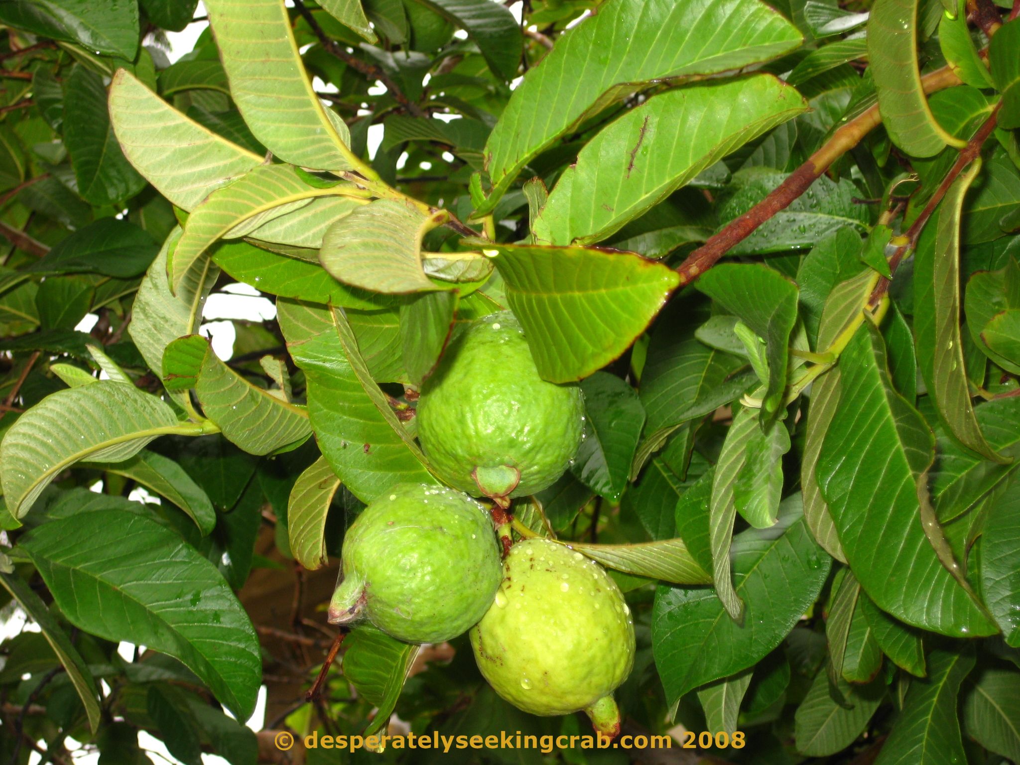 About a month after we moved into this house, I had noticed a tree at one end of the car park that had an abundance of yellow round fruit on the tree as well as fallen and squished ones on the ground under it. It seemed as if every car that drove by this tree squished one on its way past. Upon closer examination, I must have gasped quietly when I realized that it was a guava tree and not just any old guava tree, it was the variety that I grew up with as a child in Hawaii – yellow on the outside and pink flesh on the inside. What other types of guavas are out there? One website, www.tropicalfruitworld.com.au on the Gold Coast in Australia has a great explanation on the different types of guavas (they list a total of 11) and I didn’t even know that there was one actually called “Hawaiian” which happens to be a green skinned, pink fleshed variety. Last year, the tree produced so much that I had enough to give away to people, to puree them and enough to make two batches of guava jelly. I don’t know what’s wrong this year but either the drought caused less fruit or perhaps it rained during flowering but there are very few on the tree and I am actually quite saddened by this. Ah well, this is nature and every year can’t be the same – I will just have to cherish the few that I do get this year. One of my favorite ways of eating guavas? Waiting until ripe and very fragrant, slicing in half and devouring it with just a tiny sprinkle of sugar.