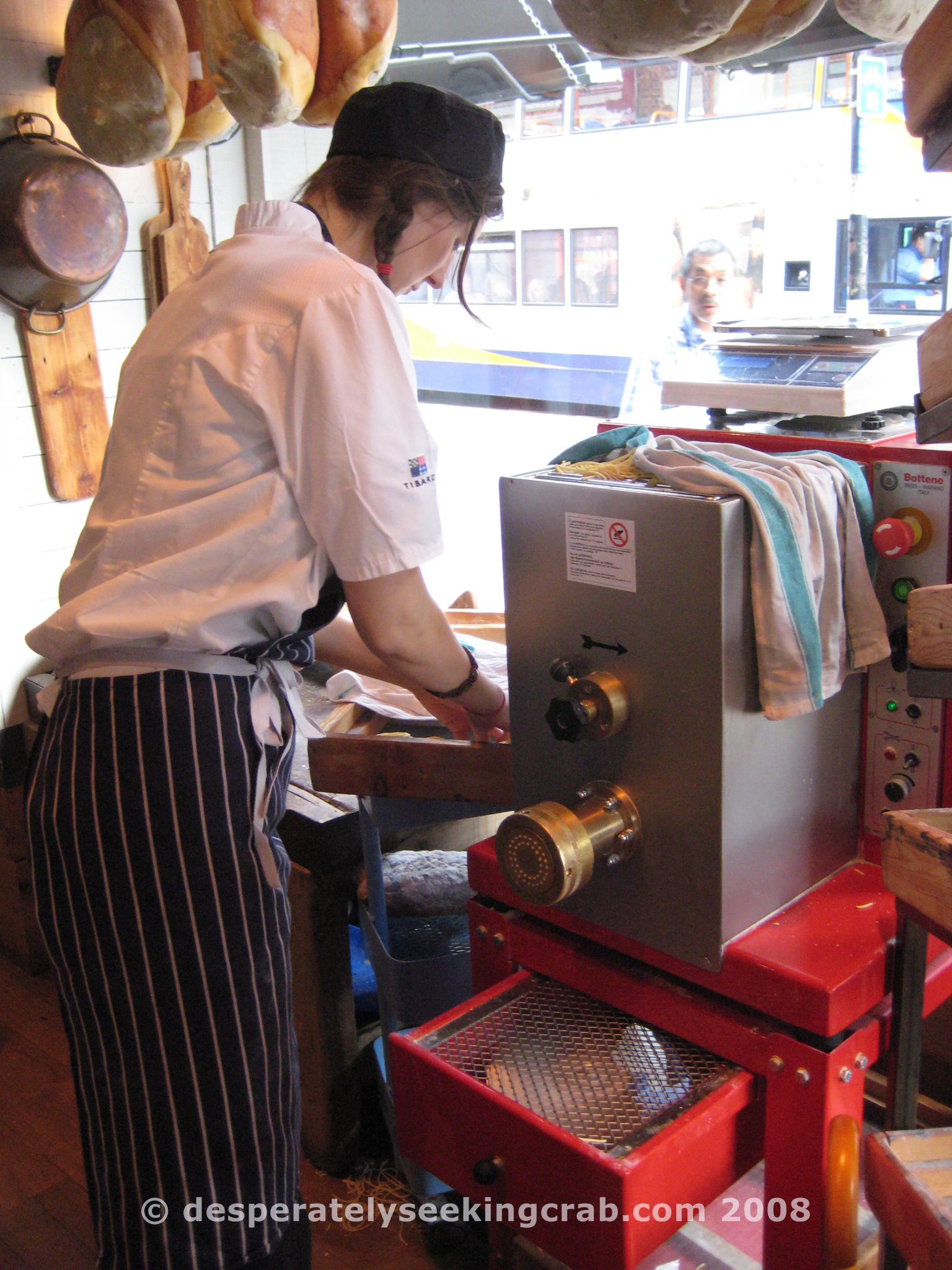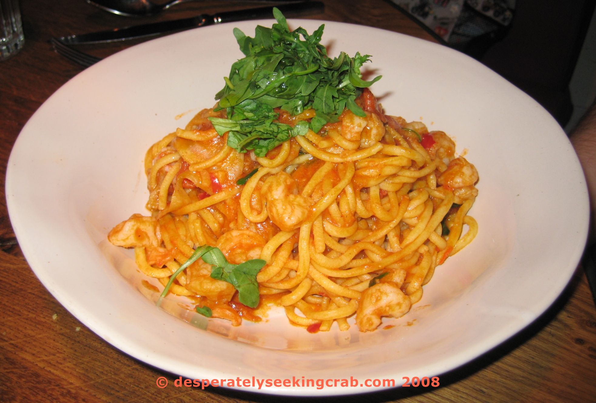 The restaurant doesn’t take reservations but according to their website, if you are a group of 8 or more, they may accommodate you. Luckily we arrived at around 2pm, which was after the lunch rush but we still had to wait a little while for a table. The restaurant was buzzing with people and while we waited, I watched an employee making fresh pasta in front of the large window that faces the main street. I was quite impressed that they made the pasta fresh, as needed. We were seated in the back of the restaurant and because we were starving, it didn’t take us long to decide what to order but me and a friend were both agonizing whether to get the prawn linguini or truffle tagiatelle so we decided to split them. The other thing that impressed me was their children’s menu. Jamie is well-known for educating children to eat healthy, real food – no chicken nuggets and chips or hot dogs at this joint – the kid’s meals were basically smaller portions of adult pastas such as spaghetti bolognese served with free, all-you-can-drink cordial. Kids even got crayons, stickers and a cool twirly fork to eat their spaghetti (which probably requires your child to be at least 4 or 5 yrs old to maneuver properly). Our friend’s daughter is 3 and she was too young to understand the concept that if you run the fork between your thumb and forefinger, it will automatically twirl your pasta for you but it is a very cool concept if you are a kid!