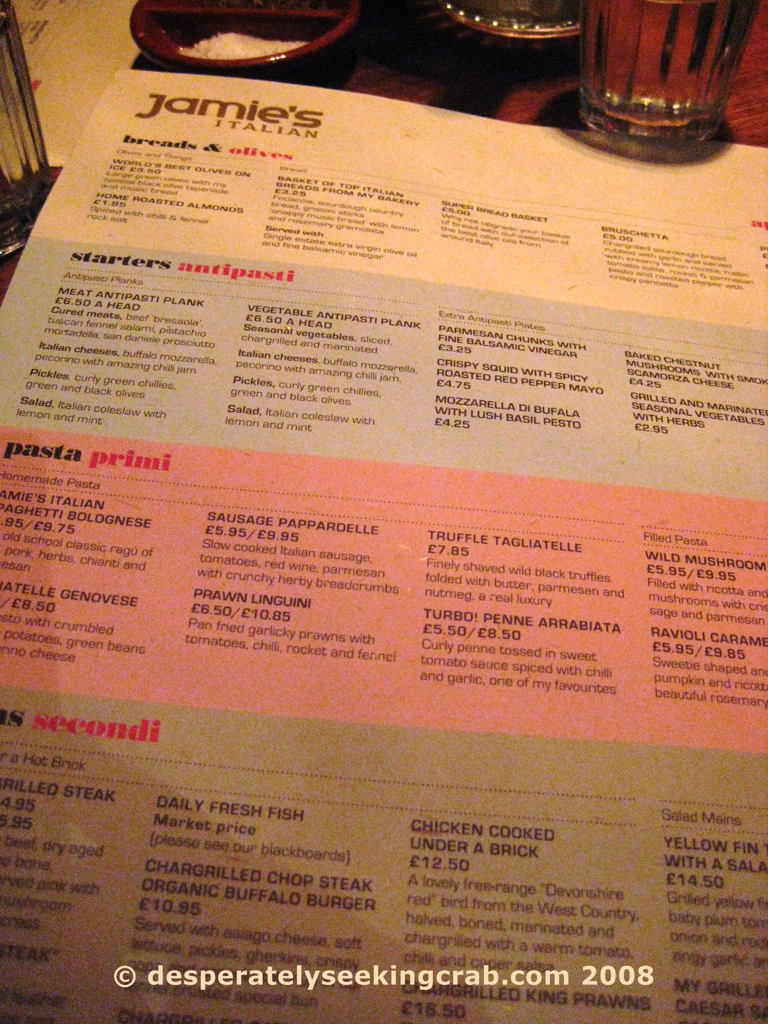 In September 2008, I spent some time in Oxford (a place close to my heart) to present a paper at the Oxford Symposium on Food & Cookery (more on that later) and to visit some old friends. I haven’t been to Oxford in two years and I noticed that a few new restaurants had popped up – one of which was Jamie Oliver’s Italian Restaurant simply called “Jamie’s Italian” on 24-26 George Street. I can’t even remember what was there before (if you remember, email me please). It is the first restaurant in a planned 20 restaurants completely backed by Jamie and his business partners (currently the other locations are Bath and Kingston). The idea behind his Italian restaurants is to provide good, casual Italian food – similar to Antonio Carluccio’s successful chain through Britain called Carluccio’s.