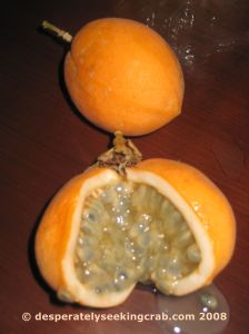 The yellow passionfruit that was sold had an almost spongy outer skin and it was full of pulp and seeds. The woman who sold it to me couldn’t even tell me what it was and until I cut it open I didn’t realize that it was a passionfruit. It had the most peculiar soapy, woody flavor yet with a passionfruit undertone. It was very floral and not something that I enjoyed immensely although I ate about three or four just to give it a chance. According to Julia F. Morton in her book Fruits of Warm Climates, she lists at least a half a dozen yellow varieties of passionfruit so I guess it could be one of these varieties. I honestly don’t have much desire to research further than this and was happy that I was able to try a new variety of tropical fruit that I had never tasted before.